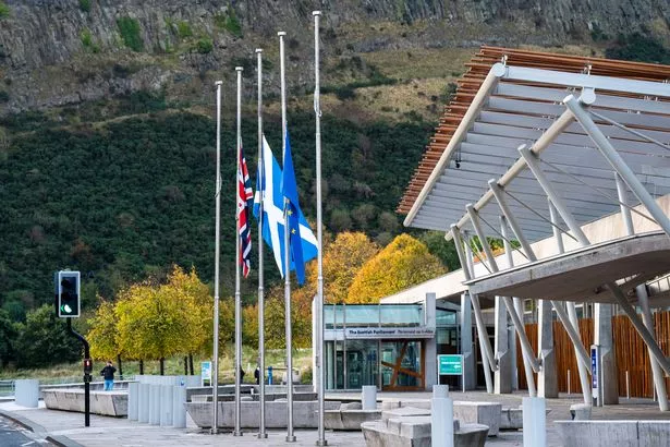 位于爱丁堡荷里路德的苏格兰议会大厦外,降半旗(Image: PA)