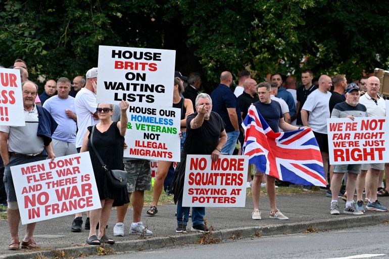 周日,愤怒的暴民袭击了两家用来安置寻求庇护者的酒店,打破窗户并纵火,随后警察驱散了人群,居民被疏散。