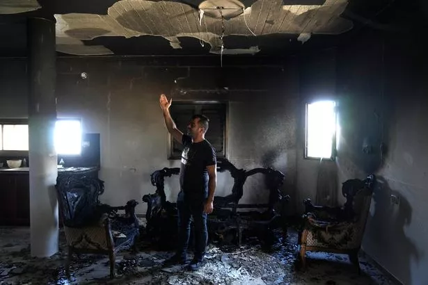 一名巴勒斯坦人站在他的家中,他的家在以色列定居者的暴怒中被烧毁(图片来源:美联社)