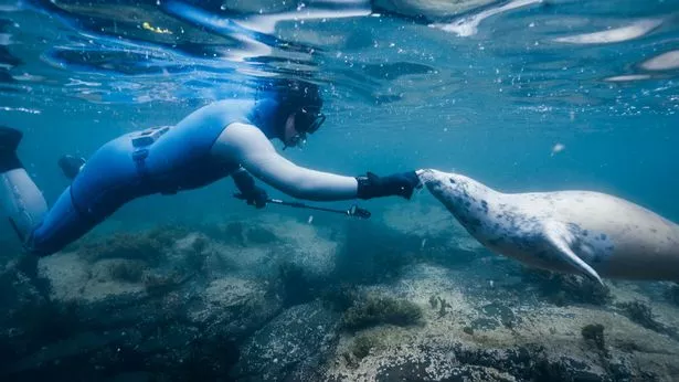 他潜入诺森伯兰郡海岸的海浪下,就在他位于安布尔的手术中心附近,他找到了一种与这些伟大的海洋动物一起游泳时交流的方法——他们非凡的关系为他赢得了“海豹语者”的绰号。