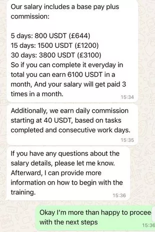 他被告知,工资将以增量形式发放,5天后支付644英镑,15天后支付1200英镑,30天后支付3100英镑,每月总计4650英镑,此外,每完成一项任务,他还会得到一小笔佣金。为了拿到这笔钱,奥马尔被要求在crypto.com上开一个账户,因为他的工资将以USDT支付,USDT是一种被称为Tether的加密货币,与美元的价值挂钩。