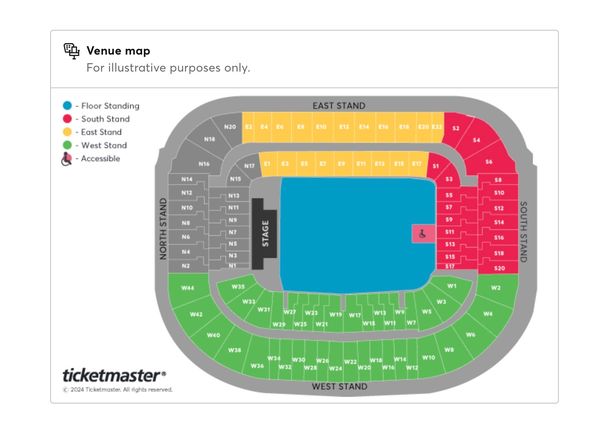 每户球迷只能购买四张门票。Ticketmaster表示:“本次活动每人每张信用卡限购4张票,请遵守公布的购票限额。”超过购票限额的人可被Ticketmaster自行决定取消部分或全部订单和门票,而无需通知。这包括与相同姓名、电子邮件地址、账单地址、信用卡号或其他信息相关联的订单。”