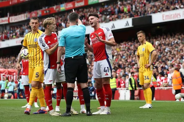 阿森纳1-1布莱顿和阿尔比恩:阿森纳在对阵布莱顿的比赛中一度领先,但在北伦敦,德克兰·赖斯有争议的被罚下场改变了比赛