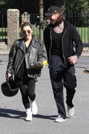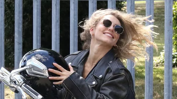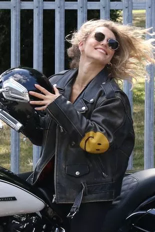 她一度戴着头盔,穿着机车夹克(图片来源:JAMES CURLEY和MAGICMOMENTSUK)
