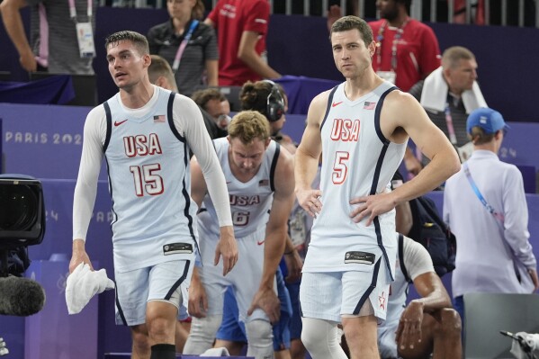 巴黎(美联社)——美国男队在周日举行的3x3比赛中被淘汰出局,此前他们在台球比赛中以2胜5负的成绩结束了最后五场比赛,明星吉默·弗雷戴特缺席了比赛。