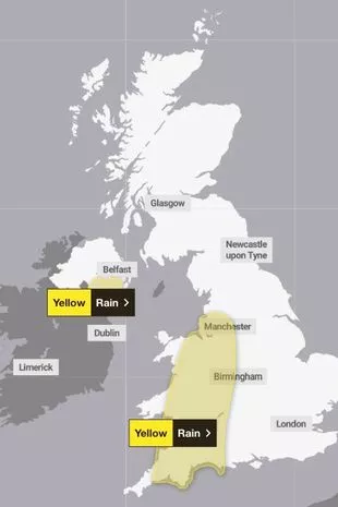 天气警报涵盖了两个主要地区,英国气象局警告称,这两个地区将迎来几英寸的降雨,并在短短几小时内淹没整个国家