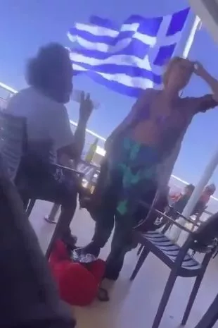 在希腊一艘游轮上拍摄的一段视频中,可以看到这名女子走近一对正在享受假期的夫妇。