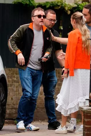盲人喜剧演员克里斯·麦考斯兰是第一个宣布出演2024年剧集的人,他和谢恩一起被拍到,谢恩拿着一个手提袋,向摄影师们友好地做了一个和平的手势。这位演员穿了一件休闲的蓝色衬衫和配套的裤子,最后穿了一双耐克运动鞋。