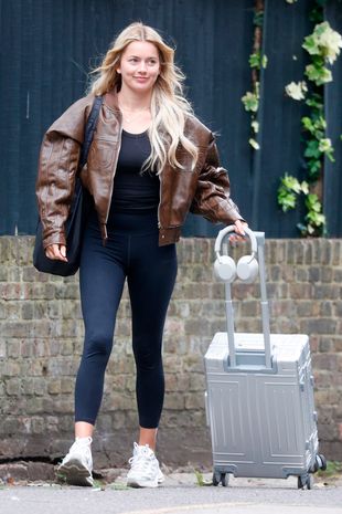 这位前《爱情岛》选手背着一个黑色的单肩包,身后拖着一个灰色的手提箱,有传言称她与前《严格》专业人士乔瓦尼·佩尼斯(Giovanni Pernice)有关系。
