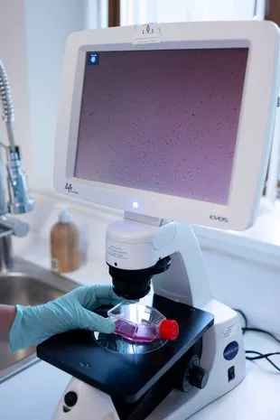 露西向《镜报》展示了一只猫的细胞,这些细胞可能会被送往克隆(图片:镜子)