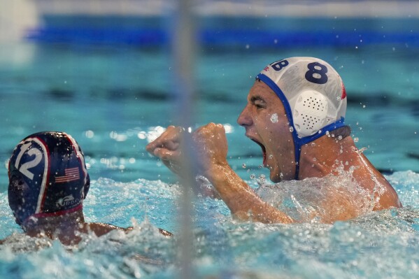 南泰尔,法国(美联社)——周五,在男子水球锦标赛半决赛中,尼古拉·德多维奇梅开二度,帮助塞尔维亚队以10比6击败美国队,结束了美国队的惊人战绩。