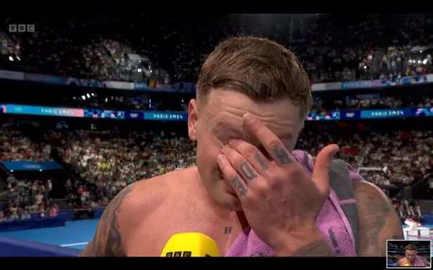 在巴黎奥运会男子男子100米蛙泳决赛中为英国队赢得银牌的亚当·皮蒂(Adam Peaty)流下了“幸福的眼泪 长期以来,皮蒂一直是法国的银行家,与迈克尔•菲尔普斯(Michael Phelps)一样,他是唯一一位连续三届在法国首都巴黎举行的奥运会上在同一项目上获得金牌的男子游泳运动员。 但意大利选手 赛后,皮蒂情绪激动,回忆起在日本夺冠后,他在泳池内外度过了一段艰难的时期,他一直在与自己的精神健康作斗争,去年由于精疲力竭,他暂停了比赛。 阅读更多:Lady Gaga在奥运会上向法国总理透露了与科技明星迈克尔·波兰斯基订婚的消息 亚当·皮蒂(Adam Peaty)在2016年里约奥运会和2020年东京奥运会上获得男子100米蛙泳金牌(图片来源:Patrick Khachfe/Getty Images) 在巴黎奥运会上获得银牌后,皮蒂说:“我措手不及。一边有两个人被我打败了,但我没有看到另一边的人。两种情况都有可能发生。 “这一点也不难过,”他说。这些是幸福的眼泪。如果你每次都愿意冒险,我认为没有什么失败可言。我很高兴,合适的人赢了。 我没有用奖牌来定义自己。我用我的心来定义我自己,以及它带给我的感觉和创造。它让我发挥出了最好的一面。 亚当·皮蒂(Adam Peaty)在男子100米蛙泳决赛中获得第二名后情绪激动(图片:马丁Rickett / PA) 这项运动 由皇家公主授予奖牌的Peaty透露,他在周日的展示会上醒来时喉咙痛,并承认如果没有100%的状态,可能会付出高昂的代价。 在男子100米蛙泳决赛中,马蒂宁吉(Nicolo Martinenghi)是一个惊喜(图片:马丁Rickett / PA) 他泪流满面地说:“明天他将以奥运冠军的身份醒来,那种感觉是无法战胜的,我为他感到高兴,这是我过去14个月所经历的旅程的证明。” “今天早上,轮到我了,我真的认为这不是命中注定的,我现在更平衡了,不会去打败自己。 亚当·皮蒂擦去眼泪(图片:英国广播公司) “我仍然想在接力赛中提供帮助,这就像宿醉一样,但我非常感谢我多年来取得的成绩。这不是命中注定的——我从2014年开始一直在做这件事,10年是很长的时间,现在有多少人还在赢得奖牌? “我希望我能激励人们,你可以承受损失,但仍然会赢。” 夺冠后,Martinenghi说:“成为奥运冠军是梦想成真,仅次于亚当,他是我的偶像之一。我和亚当一起长大。”