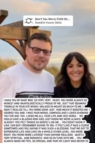 她形容她的哥哥是一个“温柔的巨人”,有一颗“巨大的心”。马丁说他希望她“坚持下去”,并为她给别人带来快乐而“自豪”。她接着说:“悲伤并不漂亮。它像地狱一样痛苦,让你质疑很多你曾经确信的事情。起床做一些正常的事情是很困难的。有时候我能应付,有时候不行。”