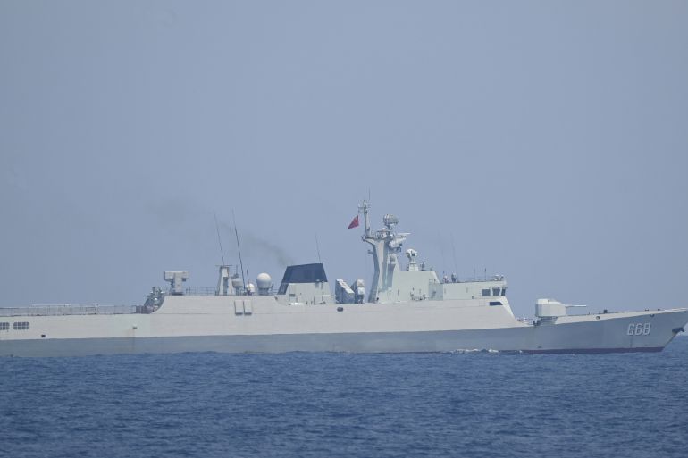 中国军队在与菲律宾争夺主权的南中国海一片海域附近展开军事演习。