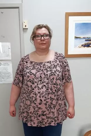 因此,在去年5月,她决定受够了,减少了每天两餐四餐的饮食,每天摄入800卡路里的热量,每天喝2.25升水。她的身体很快就开始缺乏卡路里,体重也开始下降,五周内减掉了两英石。她按照剑桥体重计划为她量身定制的1:1饮食法坚持了下来,现在她的体重刚刚超过15英石,总共减掉了6英石9磅。