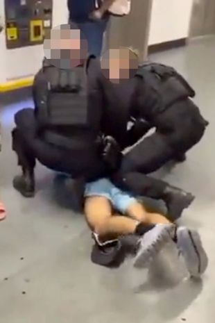 在暴力场面中,一名警察似乎踩了一名男子的头部(图片:X)