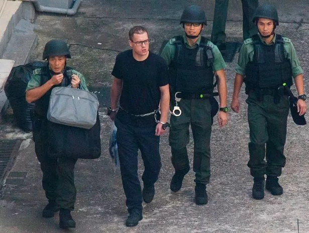 邪恶的留里克·贾汀在离开香港东区法院的囚车里咧嘴笑着(图片:法新社/盖蒂图库)