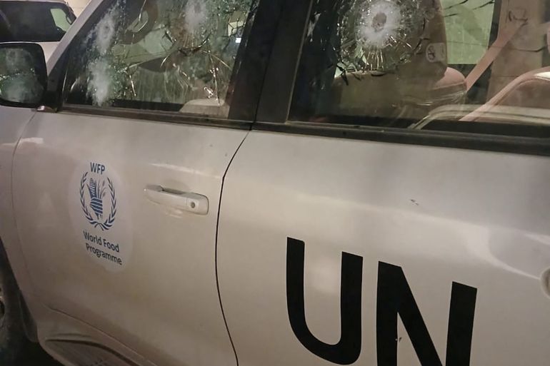 联合国发言人Stephane Dujarric在纽约告诉记者,这辆标有“明显标志”的人道主义车辆被以色列炮火“击中10次”,包括瞄准前窗的子弹。