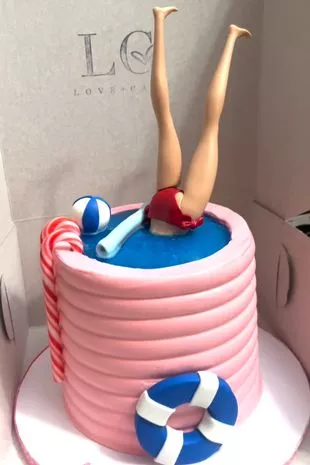 蛋糕上画着一个女人头朝下跳进池塘(图片:oopsibrokemyneck / Instagram)
