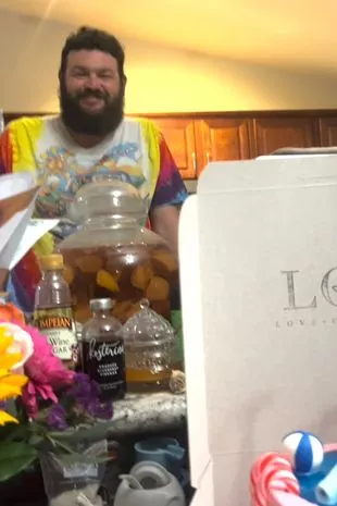 在10月12日的视频片段中,吉娜显然被逗乐了:“我男朋友带着蛋糕出现了。哦,我的天哪。”然后镜头切换到蛋糕的全貌,一个女人的腿从一个浅水池里伸出来,表明她是头朝下跳水的。几秒钟后,镜头转向科里,他对自己在几个小时内完成的工作非常满意。”