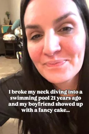 吉娜在接受《镜报》采访时表示,她把这个甜点称为“结婚纪念日蛋糕”,21年前,她跳入游泳池后脊髓受伤,幸免于难。“我在Instagram上的黑色幽默是出了名的,”她补充道。“我不敢相信他做到了。我真的告诉他,如果前一天晚上9点50分吃个蛋糕会很酷,他第二天就照做了。”
