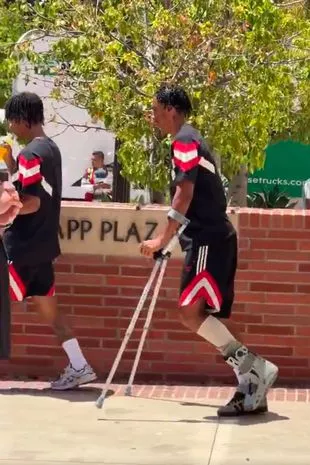 在输给曼联的上半场比赛中下场后,这位18岁的球员在洛杉矶加州大学洛杉矶分校的曼联训练基地拄着拐杖,左脚上穿着保护塑料靴。长期失去约罗对曼联和主帅黑格来说是一个巨大的打击,他计划在新赛季开始时让这位法国小将成为他新防线的核心。