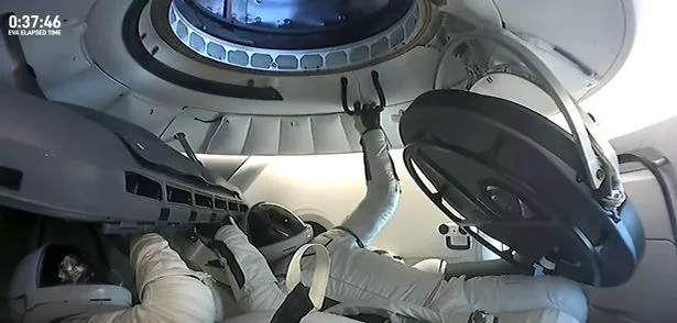 后来有人看到艾萨克曼从舱口向外眺望广阔的太空,同时他一直抓着一根金属棒。飞船外部的摄像机显示他开始向外移动。