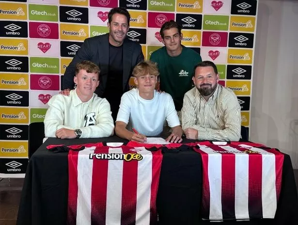 这位15岁的球员在周末宣布,他已经与蜜蜂队签下了一份合同。他分享了一张他与兄弟和爸爸杰米一起签约俱乐部的照片,并写道:“我们着陆了。@brentfordfc。”