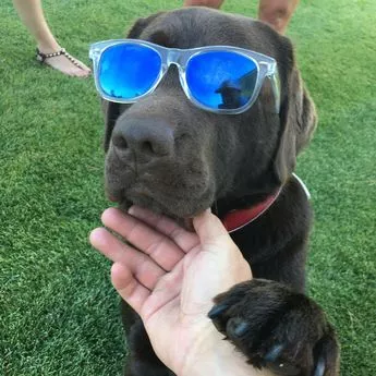 这张照片上,48岁的蚂蚁和他心爱的狗一起庆祝国际狗日,其中最引人注目的是他们曾经分享过的巧克力拉布拉多犬Hurley。