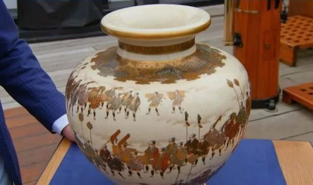 该专家接着解释说,这件作品是一种来自日本的萨摩陶器,并指出了它的历史意义和对西方世界的介绍。