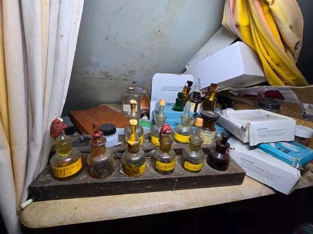 在谈到室内区域时,他说:“除了一些涂鸦外,这个地方的内部状况非常好,有些东西已经被洗劫和偷走了,但你可以看出这里曾经住过一辈子。”瓶子里的各种化学品到处都是,还有科学设备,我不知道它们是用来做什么的。以及各种各样的古董和记忆只是留下枯萎和腐烂。