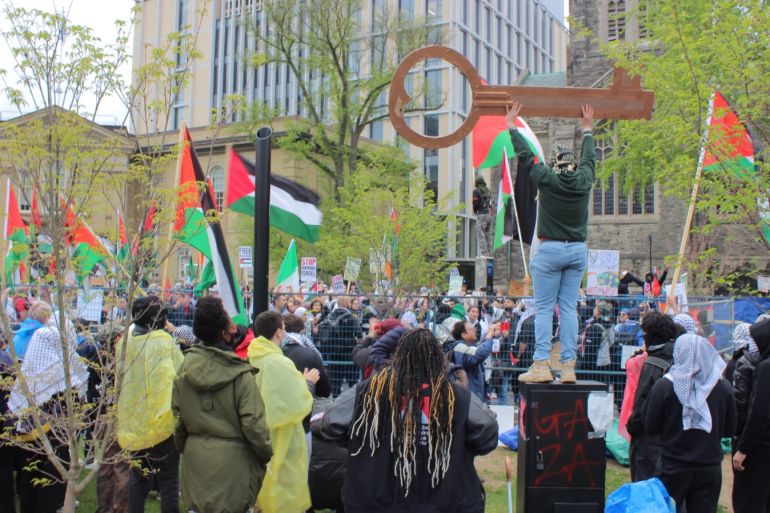 在给半岛电视台的一份声明中,多伦多大学表示,它已经“寻求对话和法律行动的并行路径,以确保和平结束营地”。它还声称,学生抗议领袖“拒绝”使用现有程序来申请撤资。