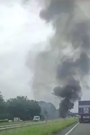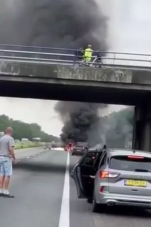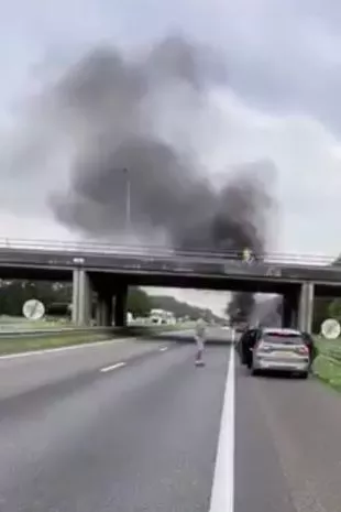 图像还显示,交通被阻塞,一辆消防车抵达现场。目击者Floyd Aanen写道:“在高架桥上。到处都是烟雾和警报器。飞机在布雷达机场附近的A58航班上坠毁。飞行员死了。”其他人报告说看到了一个“巨大的火球”。