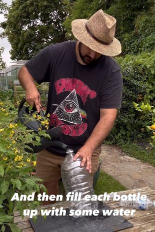 约瑟夫用水瓶灌溉(图片:@joesgarden.official / instagram)