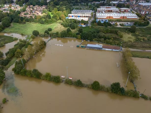 本周洪水袭击了北安普顿的斯宾塞足球俱乐部(图片:盖蒂图片社)