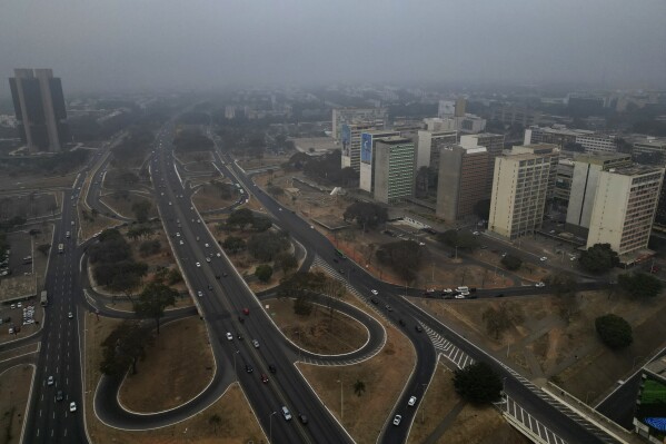 巴西利亚,巴西的现代主义之都,在过去两天醒来时发现其标志性建筑笼罩在烟雾中。巴西中部地区是亚马逊雨林、塞拉多大草原、潘塔纳尔湿地和圣保罗州大火产生烟雾的最新地区。