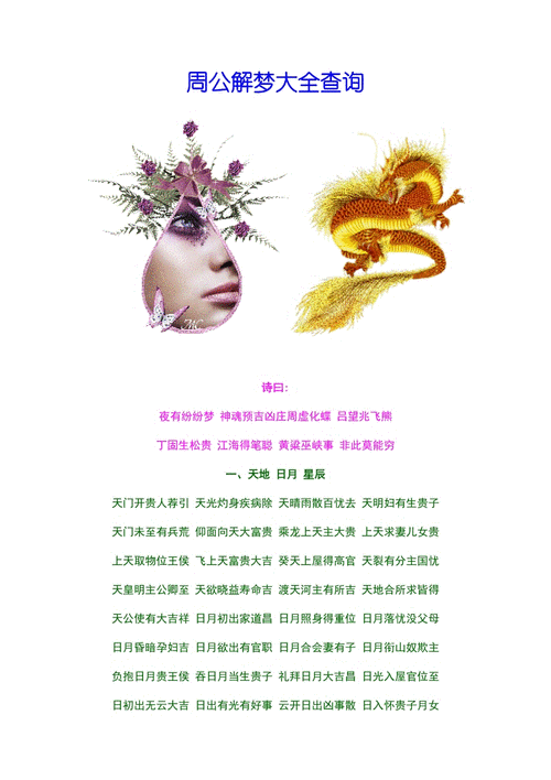 解梦是中国传统文化的重要组成部分,周公解梦则是这一领域最为经典的文献之一。根据不同的文化和时代背景,解梦的方式和内涵也有所不同,尤其是在中国古代,周公解梦被认为是对梦境进行分析和解读的权威性方法。
