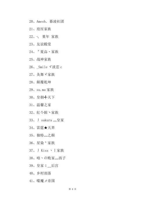 :群家族名字往往反映了语言的结构和特点。例如,在中文中,家族名字通常由两个字组成,第一个字是姓氏,第二个字是辈分或者特定的字辈,这样的结构有助于维护家族内部的秩序和辈分关系。2.