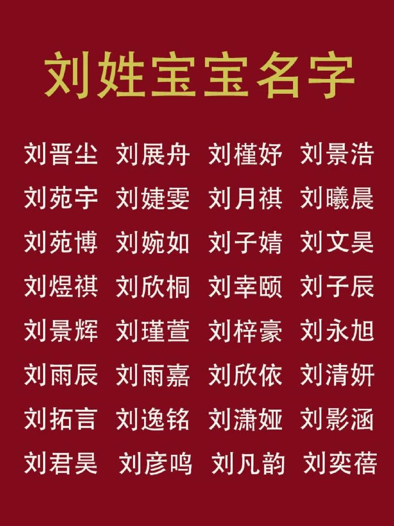 姓刘在中国历史文化中有着悠久的传统,您可以考虑选择与中国传统文化相关的名字,以传承家族的文化底蕴。