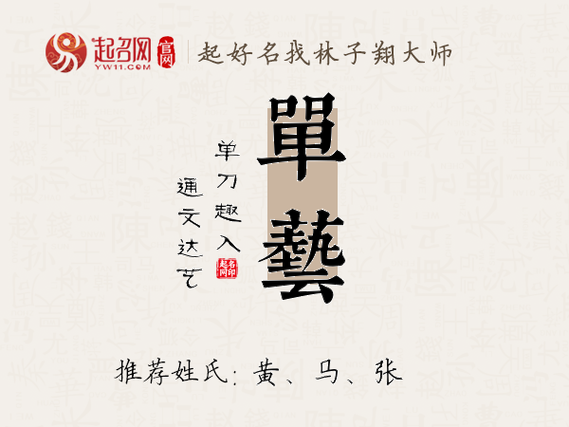 在中国传统文化中,起名是一件极为讲究的事情,仅是一个人的标识,更是家族文化、历史传承和个人命运的象征。单艺起名的文化,即是指在起名过程中,注重单一艺术元素的运用,如诗词、书法、绘画等,以此来赋予名字更深的文化内涵和艺术美感。