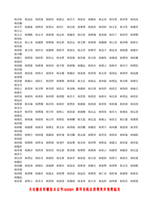 在为鸡年出生的杨姓女宝宝起名时,我们希望选择一个富有意义、吉祥美好的名字,为宝宝的人生之旅带来幸福和成功。以下是一些灵感和建议: