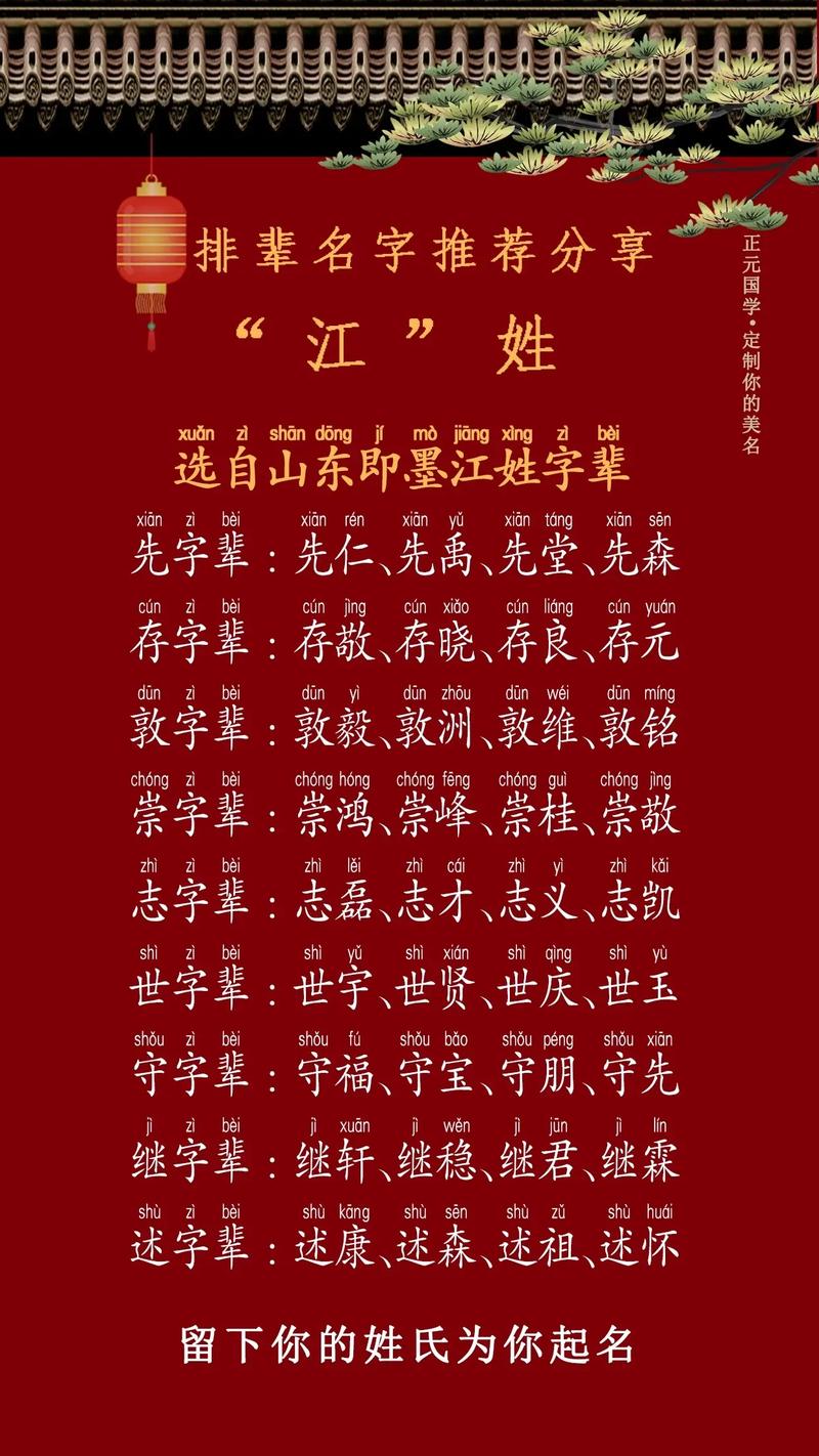 考虑到江姓的特点和家族传统,选择一个与江姓契合度较高的名字也是非常重要的。一个与姓氏相配的名字能够凸显家族的传统和特色,同时也更容易让人记住。在选择名字时,可以考虑以下因素: