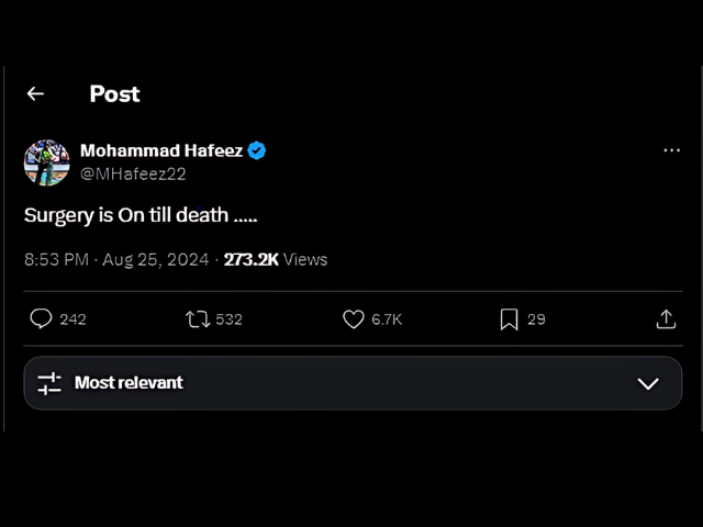 在巴基斯坦输掉这场历史性的比赛后,哈菲兹在社交媒体平台X上祝贺孟加拉国取得历史性的胜利,并讽刺地引用了纳克维早些时候关于在2024年世界杯后为球队进行“手术”的评论。