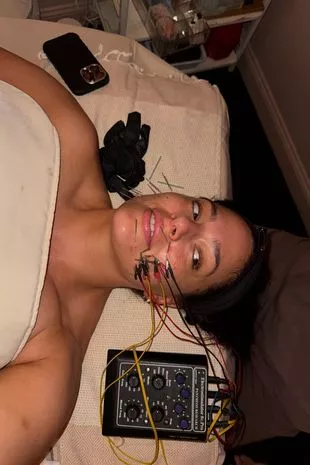 阿什利接受了面部拔火罐和电针治疗(图片:Instagram / @ashleygraham)
