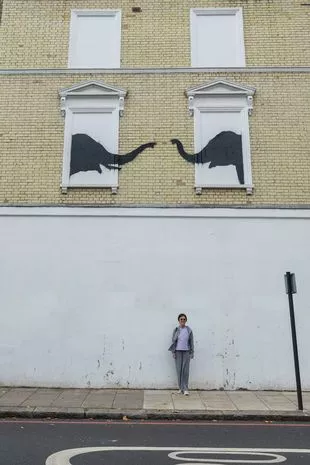 第二幅画的是两只大象,画在切尔西一栋建筑的外面,每只大象都出现在一扇白色的空白窗户里,它们的鼻子互相伸着。班克斯系列的第三件作品展示了三只猴子在肖尔迪奇附近的布里克巷的一座桥上荡来荡去。