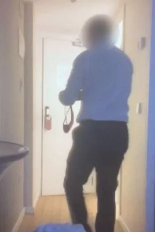iPad上拍摄的令人震惊的视频显示,这名男子穿着漂亮的衬衫和裤子,进入房间,似乎在拉拉声称是她的脏衣服袋里沙沙作响。然后他拿出她的一条皮带,闻了闻,然后把它放在他的后口袋里。她预订的旅游公司为她的遭遇道歉,并声称酒店在她向员工报告后第二天早上立即解雇了这名男子。