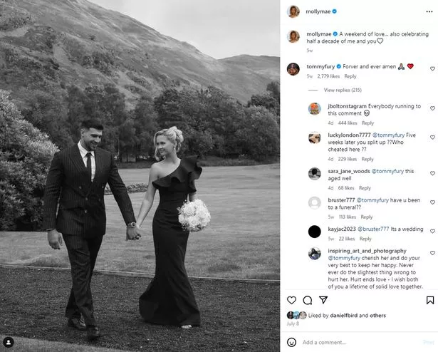 25岁的拳击手汤米·弗瑞和同样25岁的网红莫莉·梅于2019年在英国独立电视台的节目中相识,并于去年订婚。然而,这对夫妇在周三宣布分居。就在五周前,莫莉分享了一张黑白照片,照片上他们在参加姐姐的婚礼后手牵手。