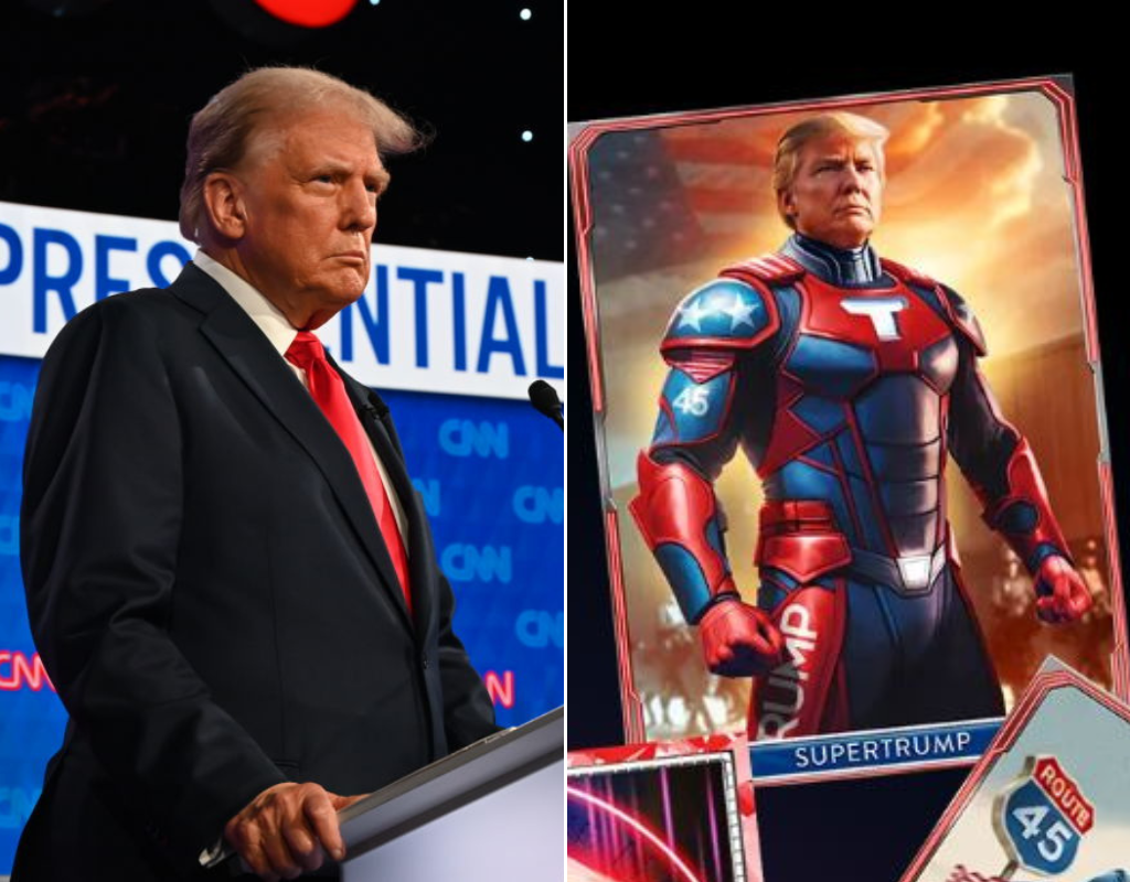 2022年,特朗普推出了他的第一个数字交易卡系列,其中包括一张他穿着超级英雄服装的照片。尽管在网上被广泛嘲笑,但这些卡片在不到一天的时间里就卖光了,特朗普赚了数百万美元。