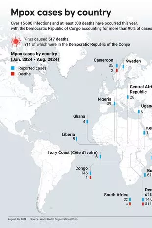 非洲疾病控制与预防中心表示,他们已在至少13个国家检测到这种病毒,比去年增加了160%。死亡人数也激增了19%。
