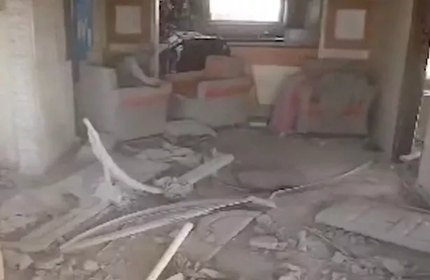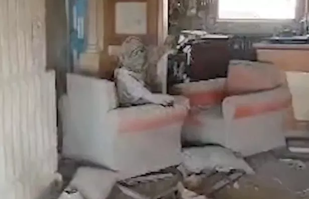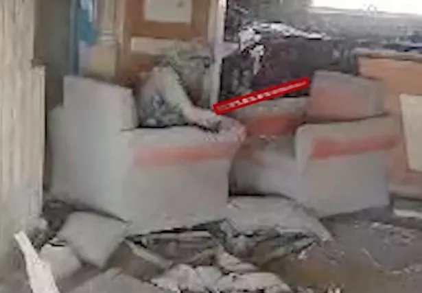 这架遥控无人机显示了这位领导人在被炮击的建筑物的废墟中,并向辛瓦尔靠近,辛瓦尔坐在一张满是灰尘的椅子上,头上裹着围巾,试图保护自己的身份。辛瓦尔的右手被子弹打伤,他直视着无人机。视频中,他左手向无人机投掷一根棍子,试图在以色列军队摧毁大楼之前保护自己。